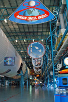 Other large exhibits include the Apollo 14 command module, an unused Apollo Command/Service Module (CSM-119) and an unused Lunar Module (LM-9). Also on display is a slice of Moon rock that visitors can touch.
