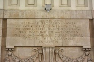 During the First World War, Ypres (or "Wipers" as it was commonly known by the British troops) was the centre of the Battles of Ypres between German and Allied forces. The Menin Gate Memorial to the Missing commemorates those soldiers of the British Commonwealth who fell in the Ypres Salient during the First World War before 16 August 1917 and who have no known grave. United Kingdom and New Zealand servicemen who died after that date are named on the memorial at Tyne Cot.