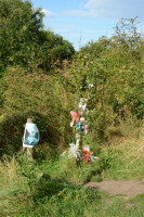 The Angel of the North is a contemporary sculpture, designed by Antony Gormley, located in Gateshead, Tyne and Wear, England. Completed in 1998, it is a steel sculpture of an angel, 20 metres (66 ft) tall, with wings measuring 54 metres (177 ft) across. The wings do not stand straight sideways, but are angled 3.5 degrees forward to create "a sense of embrace". It stands on the hill of Birtley, at Low Eighton in Lamesley, overlooking the A1.