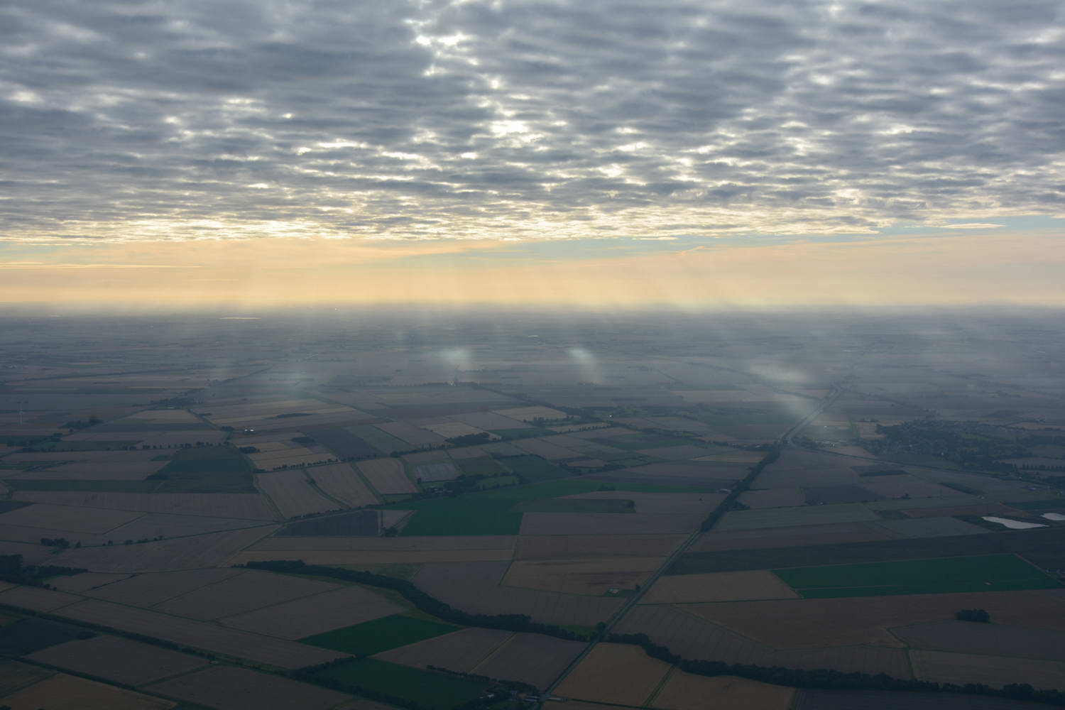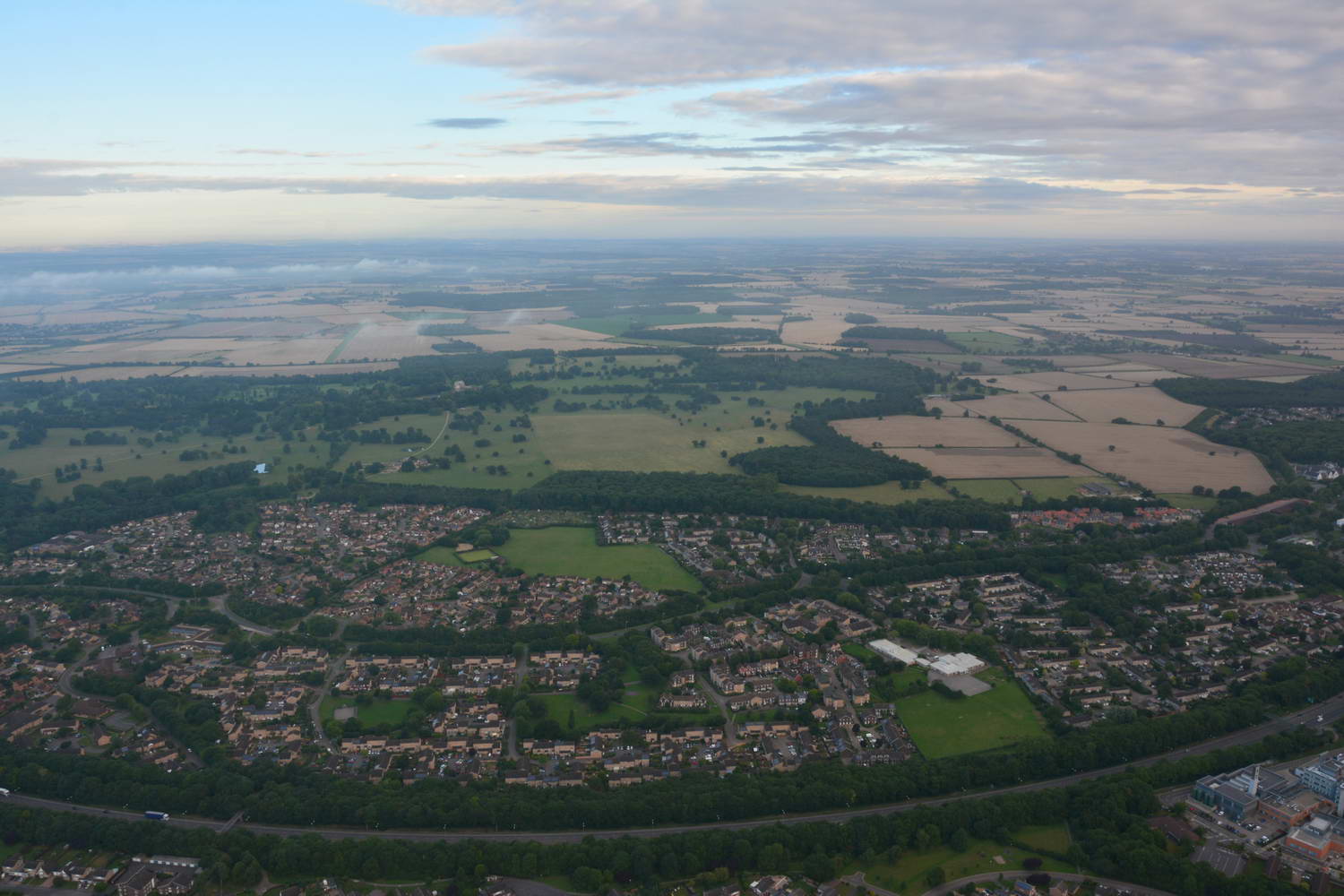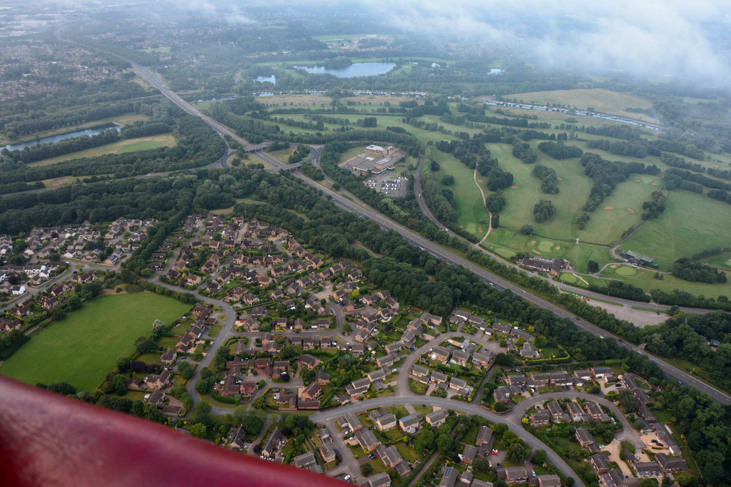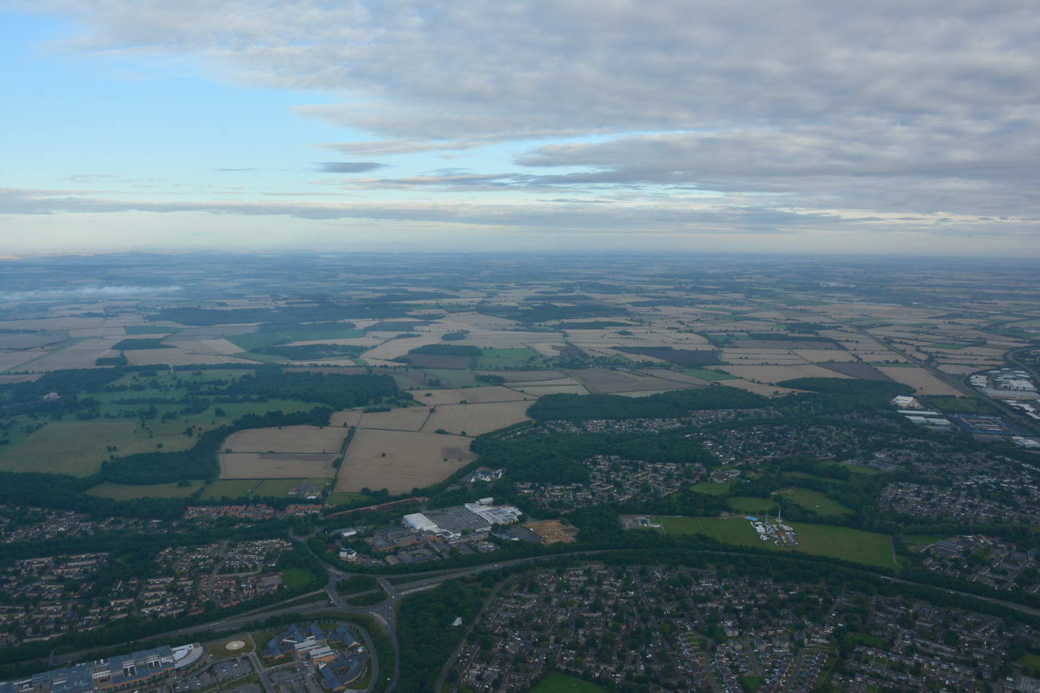 Early August morning (6.30am) balloon flight from Peterborough. Virgin Balloons A400 (400,000 cubic feet and 120ft tall).